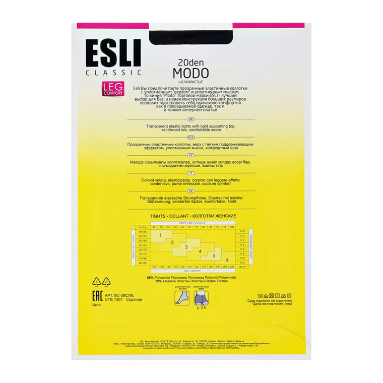ESLI — это линейка женских полиамидных чулочно-носочных изделий безупречного качества в сочетании с доступной ценой.
