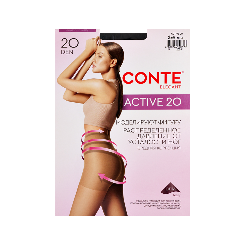 Колготки женские `CONTE ELEGANT` ACTIVE 20 den (nero) р-р 3