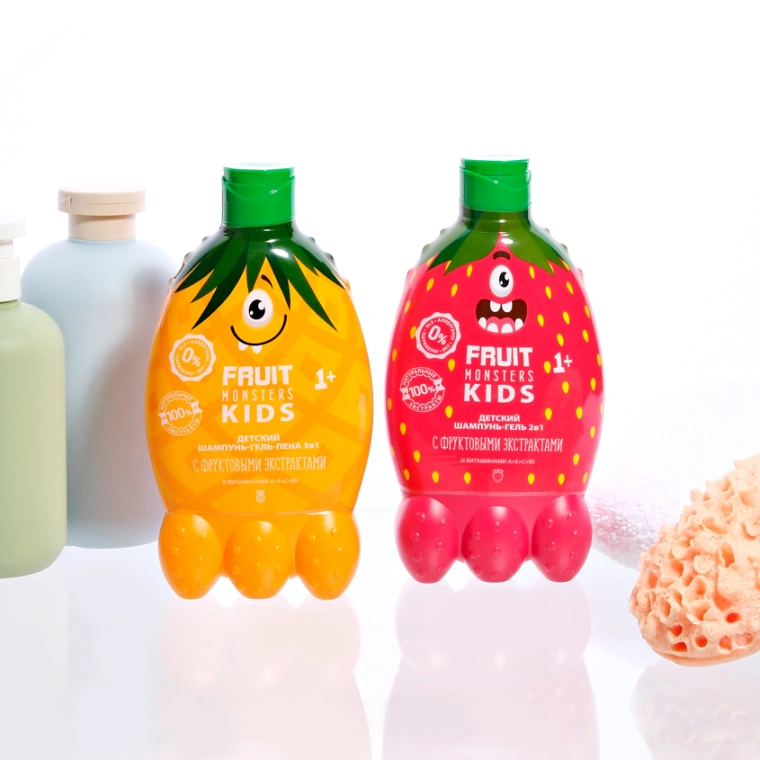 Яркие и веселые озорные монстрики с разноцветными массами и разнообразными сочными ароматами подарят море положительных эмоций. А мягкие формулы, богатые активами, подарят бережное очищение и обеспечат надлежащий уход детской коже и локонам.