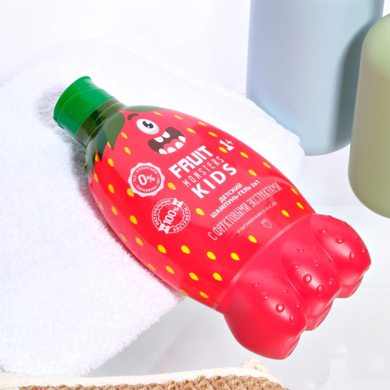 Забавный Фрутомонстр с ароматом лесной земляники превратит купание в настоящую игру. Собирай коллекцию веселых друзей для яркого купания!
