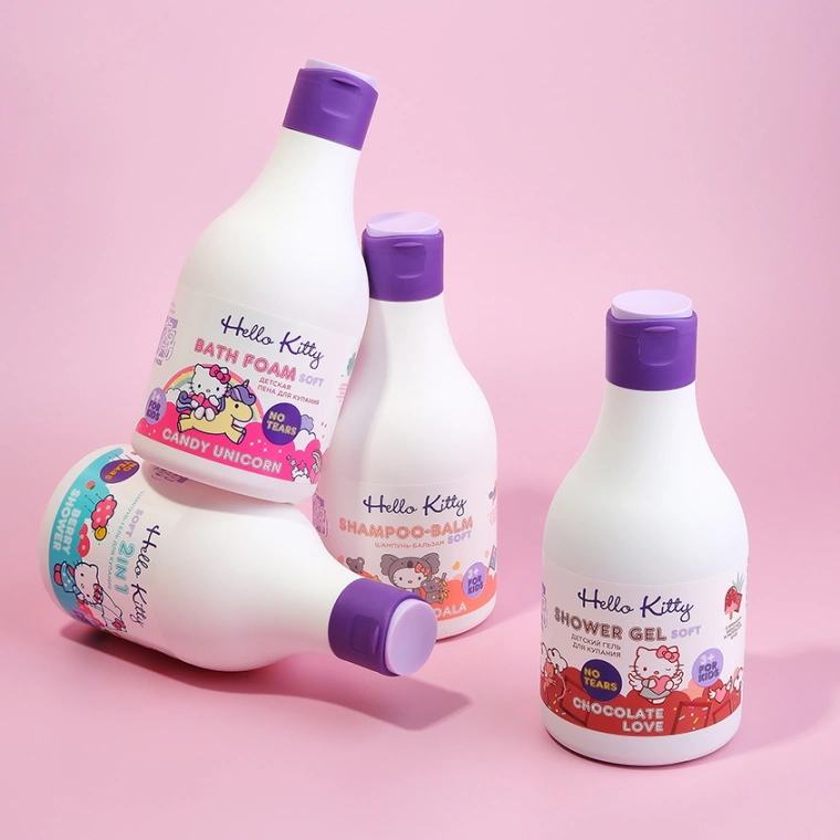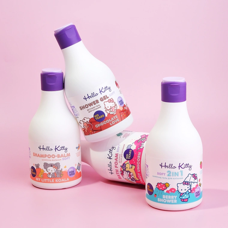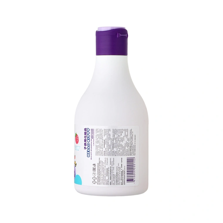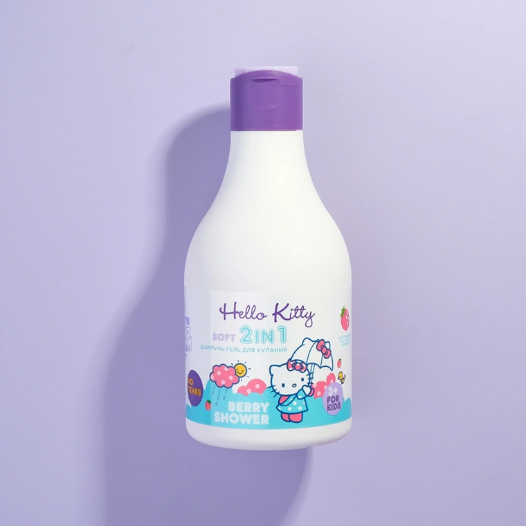 Шампунь для волос Хеллоу Китти с приятным запахом клубники нежно очищает кожу головы и тела ребенка. Шампунь детский от 3х лет, гипоаллергенный благодаря входящим в состав мягких ПАВ и пантенолу, снижает шелушение, питает волосяные луковицы. Детский шампунь в красивом флаконе, который удобно держать, он не выскользнет при мытье, герметично закрывается крышка. Шампуни для волос 2 в 1 - это и жидкое мыло детское и гель. Шампунь детский для девочек и мальчиков, гель для купания детский с увлажняющими компонентами насыщают эпидермис, можно использовать и для чувствительной кожи, без слез и раздражения слизистой.