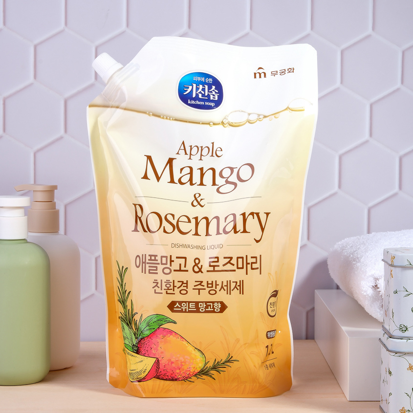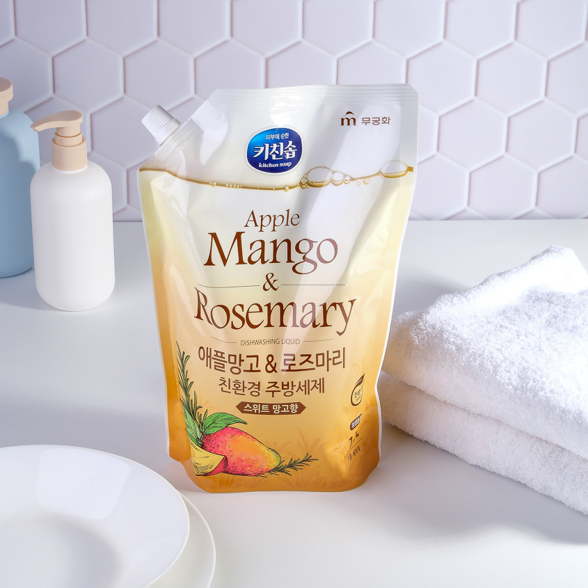 Средство для мытья посуды «Манго и Розмарин» не содержит вредных компонентов, им можно мыть детские бутылочки, а также фрукты и овощи. Оно эффективно очищает поверхность посуды от жира, а натуральные ингредиенты, входящие в состав, хорошо увлажняют и защищают кожу рук. Превосходно удаляет пищевые запахи и не оставляет навязчивого аромата на посуде. ПАВ растительного происхождения создают густую обильную пену, которая быстро и легко смывается.