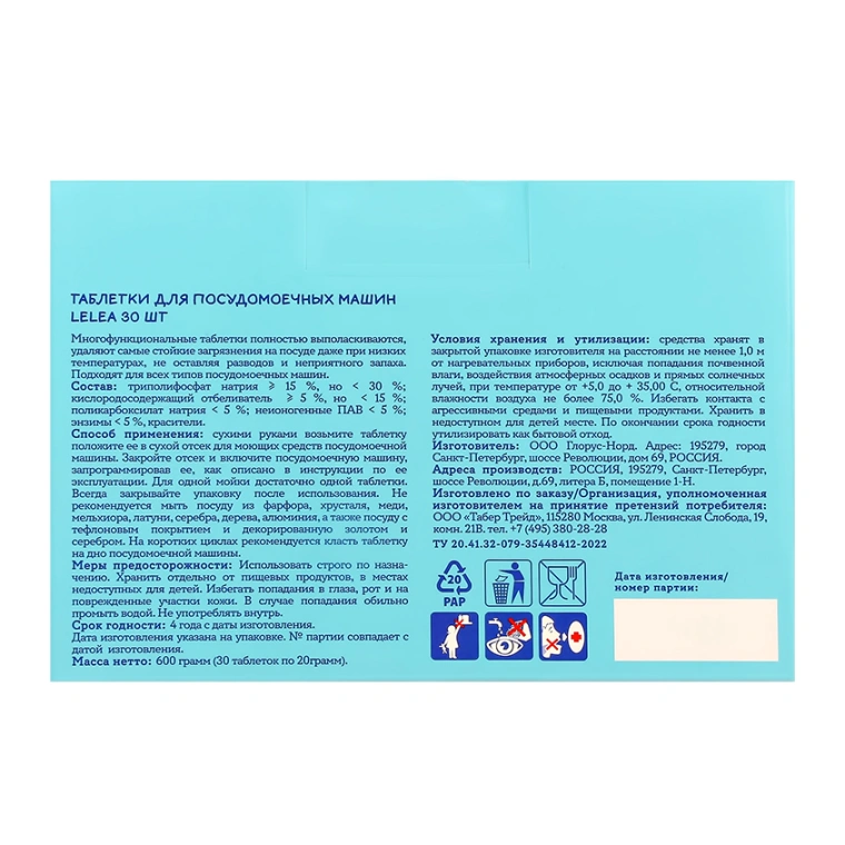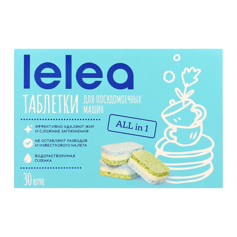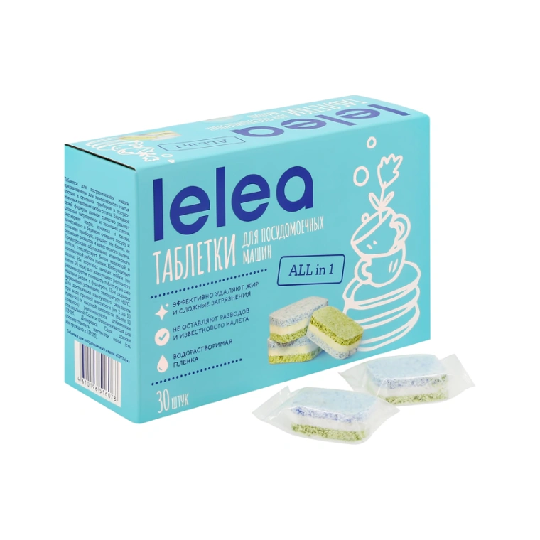 Многофункциональные таблетки для посудомоечных машин LELEA ALL IN 1 полностью выполаскиваются, удаляют самые стойкие загрязнения на посуде даже при низких температурах, не оставляя разводов и неприятного запаха. Таблетки LELEA подходят для всех типов посудомоечных машин.
