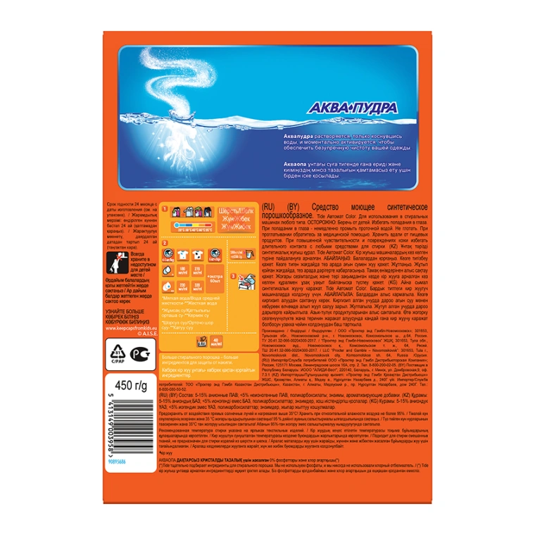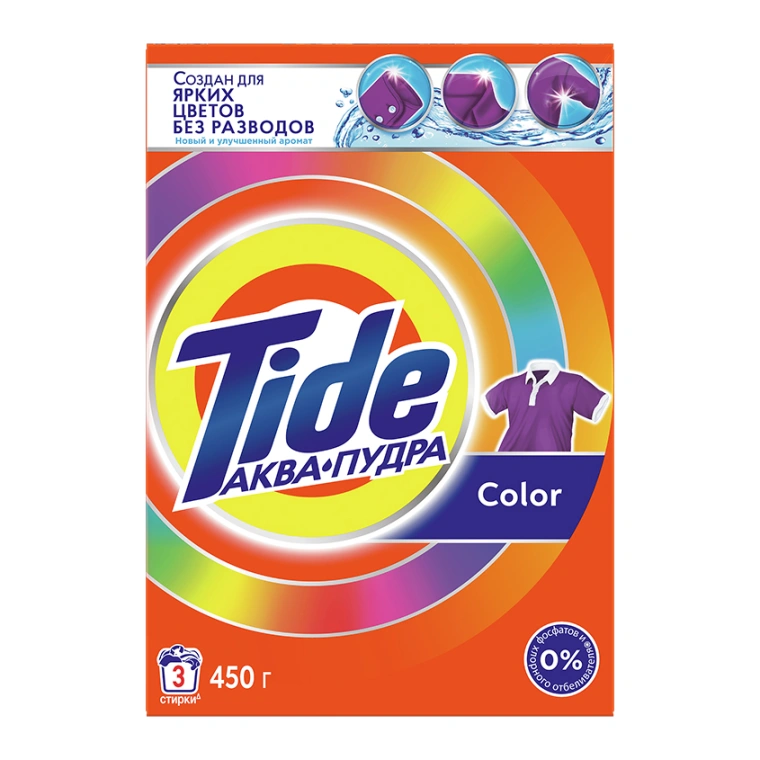 Стиральный порошок Tide Аквапудра Color прекрасно отстирывает вещи и не оставляет следов. Аквапудра растворяется при контакте с водой и мгновенно начинает свое действие, обеспечивая превосходное очищение. Порошок способен справиться даже с самыми трудно выводимыми пятнами на одежде, включая такие непростые области, как манжеты, воротнички и подмышки. Используйте вместе с кондиционером для белья Lenor, который придает белью еще больше мягкости и свежести.