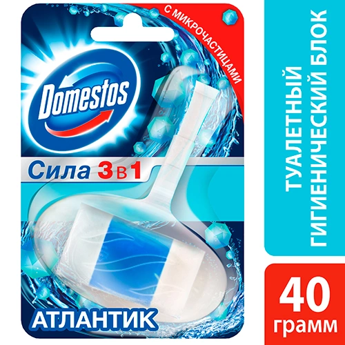 Блок гигиенический для унитаза Domestos 3 в 1 Атлантик – уникальный туалетный блок в линейке Domestos.