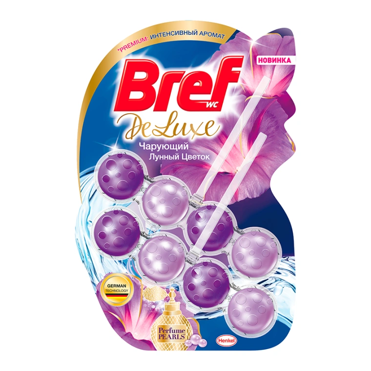Bref DeLuxe — подвесной туалетный блок для унитаза с технологией Перфюм Перлс для более длительного и интенсивного аромата!*