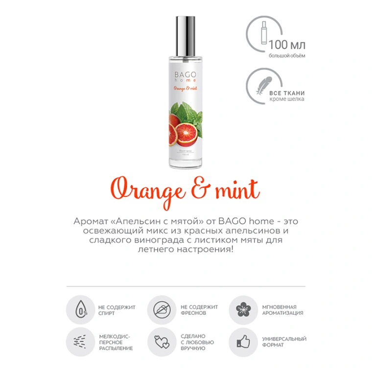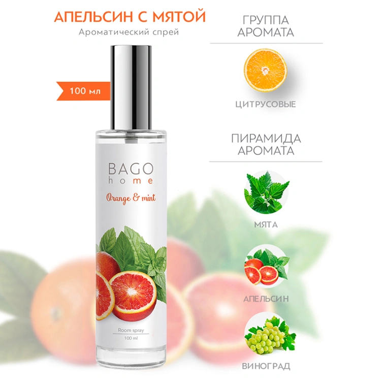 Спрей ароматический для дома Апельсин с мятой 100 мл
