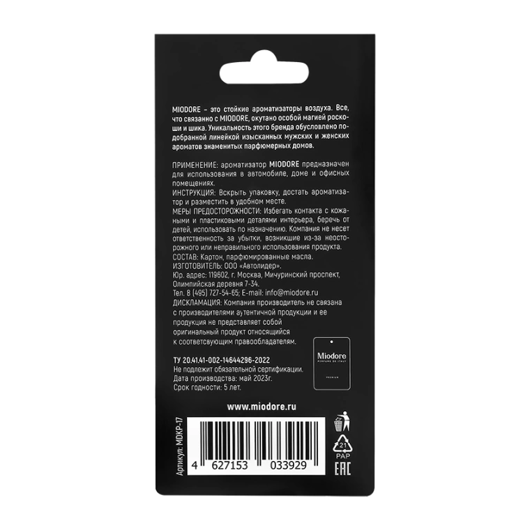 Ароматизатор `MIODORE` `AROMA RICHE` Number five №5