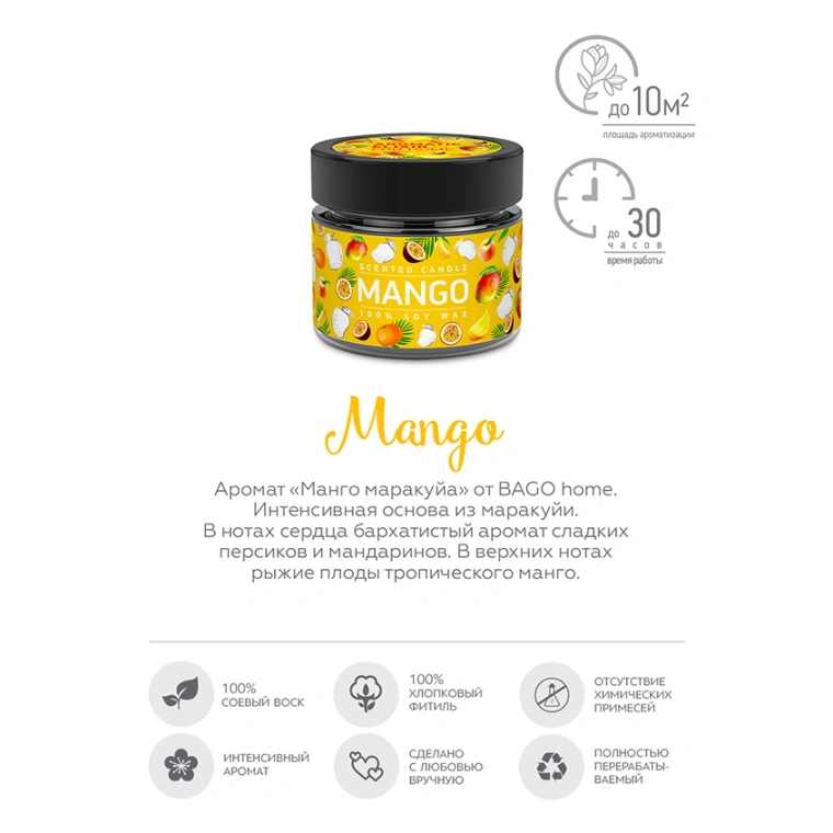 Ароматическая свеча Манго маракуйя 80г.