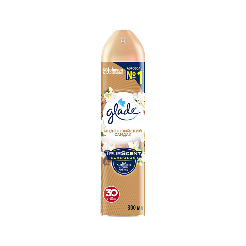 Glade "Индонезийский сандал" Нежные ноты весеннего жасмина и бергамота в сочетании с ароматом амбры и сандалового дерева окружат Вас комфортом и создадут атмосферу роскошного спа-салона у Вас дома. True Scent (ТМ) Technology гарантирует безопасность и экспертную формулу своих аэрозолей для создания ощущения чистоты — Парфюмерные композиции с эфирными маслами; — Борется с неприятными запахами; — Действует мгновенно; — Ароматы высокого качества, разработанные лучшими парфюмерными домами мира; — Перерабатываемая упаковка;