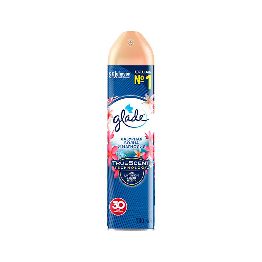 Glade "Лазурная волна и магнолия" устраняет неприятные запахи и мгновенно освежает воздух, наполняя его приятным ароматом. Бодрящие морские и цитрусовые ноты, дополненные восстанавливающим силы цветочным ароматом, подарят вам заряд энергии. Уникальная палитра ароматов и эмоций. Созданные на стыке технологии и парфюмерного искусства, аэрозоли борятся с неприятными запахами, оставляя тонкий и нежный шлейф.