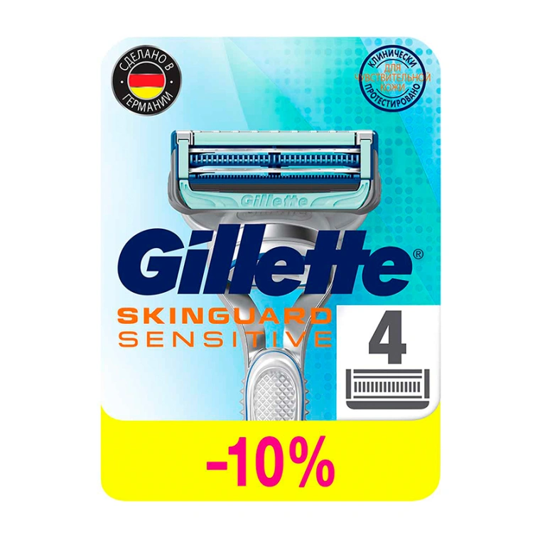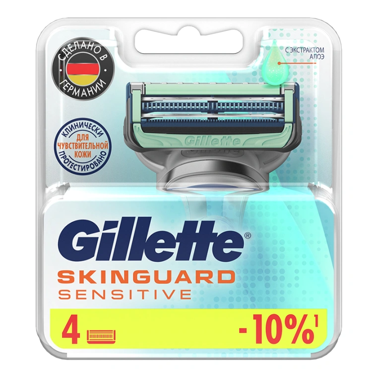 Комплектация: сменные кассеты Gillette SkinGuard Sensitive для бритвенного станка для мужчин, 4 шт. в упаковке
