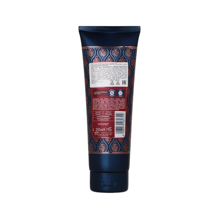 Гель + шампунь для мужчин Tesori d'Oriente изготовлен с использованием натуральных масел, без парабенов, силиконов и синтетических красителей. Подходит для ежедневного применения, обеспечивая эффективный уход за волосами и телом. Деликатно очищает, освежает и бодрит кожу, обнимая тело мягкой лаской. Обладает стимулирующими и тонизирующими свойствами, интенсивным ароматом, сохраняющимся до 3 часов."