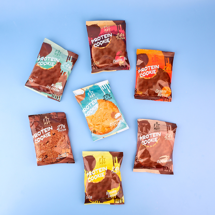 Каждому, кто добавил FIT KIT Choco Protein Cookie в свой рацион, больше не приходится выбирать между вкусной и здоровой выпечкой! Каждая порция содержит 12,8 грамм протеина, кусочки ягод, орехов, настоящий изюм или шоколад. Можно употреблять как обычный перекус или как источник дополнительного белка. Попробуйте протеиновое печенье FIT KIT Choco Protein Cookie без вреда для фигуры - здоровое питание не требует компромиссов!