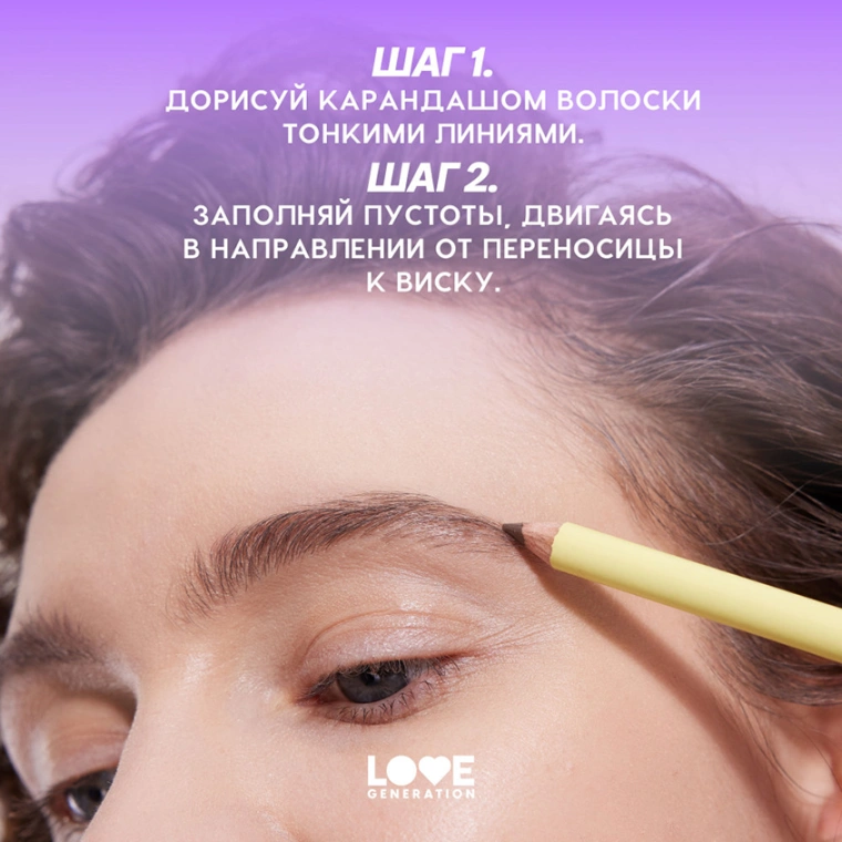 направлении от переносицы к виску. Чтобы сделать карандаш более острым, воспользуйся любой косметической точилкой.