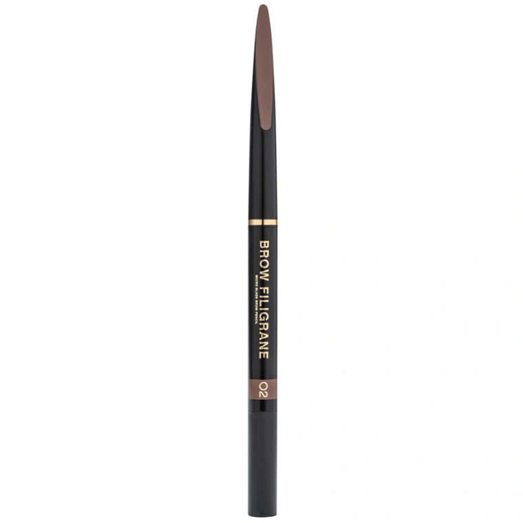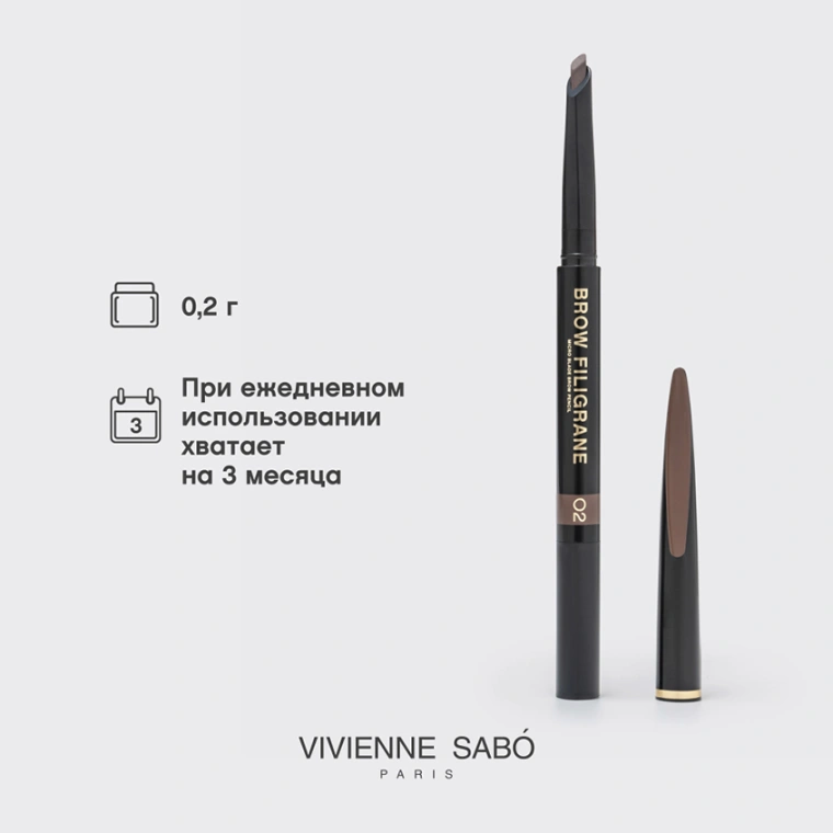 BROW FILIGRANE — автоматический карандаш для бровей от VIVIENNE SABÓ с эффектом микроблейдинга. Эта техника ручной прорисовки волосков требует филигранной точности и аккуратности. Уникальность карандаша — ультраплоский скошенный стержень в форме двустороннего лезвия, который можно использовать сразу двумя способами. Если тебе нужно прорисовать отдельные волоски и придать бровям естественный вид, воспользуйся острым тонким кончиком грифеля. А если необходимо создать графичные брови и заполнить их цветом, используй плоскость грифеля для натуральной растушевки. Щеточка-расческа на другом конце карандаша поможет равномерно распределить оттенок и придать бровям нужную форму. Формула на основе натуральных восков обеспечивает стойкость текстуры. Карандаш BROW FILIGRANE в четырех оттенках для всех цветотипов позволяет филигранно прорисовывать каждый волосок, делает брови густыми, объемными и невероятно естественными.