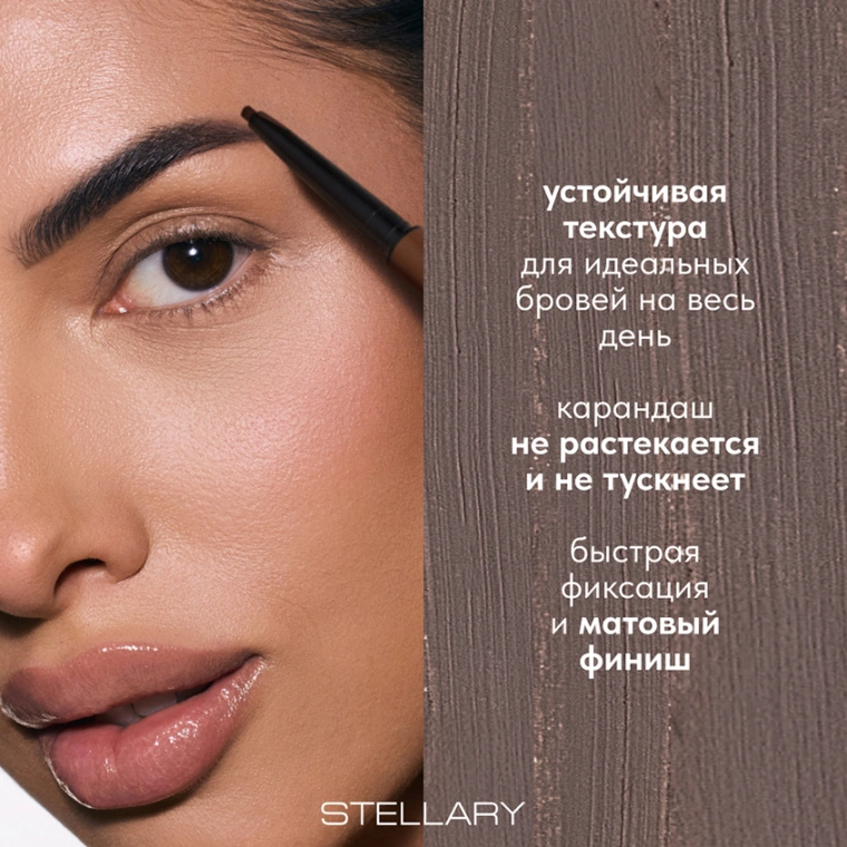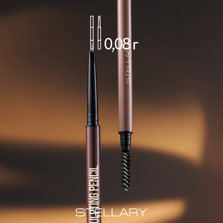 BROW SCULPTING PENCIL: дикая красота в каждом штрихе. Автоматический карандаш от STELLARY придает бровям более густой и выразительный, но при этом естественный вид. Карандаш с тонким треугольным стержнем создает четкие, но натуральные штрихи, позволяет прорисовать идеальную форму и заполнить пустоты. Брови выглядят идеально в течение всего дня благодаря устойчивой текстуре, которая не растекается и не тускнеет. Она равномерно наносится, позволяя создать безупречно ровные линии с матовым финишем. Щеточка-расческа укладывает волоски и придает бровям ухоженный вид. Дизайн с золотым анималистичным принтом олицетворяет дикую красоту и дерзкий характер обладательницы продукта.
