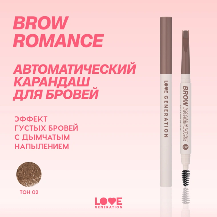 Карандаш для бровей `LOVE GENERATION` BROW ROMANCE автоматический тон 02 Taupe