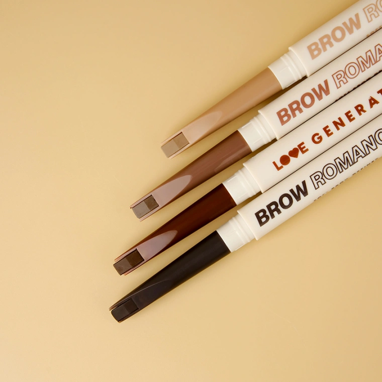 Когда макияж становится моментом нежности. BROW ROMANCE — это автоматический карандаш, который превращает ежедневный бьюти-ритуал в акт любви к себе. Забудь о графичных линиях: шелковистая текстура создает эффект густых бровей с дымчатым напылением. Карандаш имеет квадратный грифель 2 в 1: острая грань подходит для прорисовки волосков, а широкой частью удобно заполнять пробелы без усилий. Щеточка на обратной стороне поможет мягко растушевать оттенок. Больше не нужно запоминать названия палитры, ведь цвет колпачка карандаша повторяет его тон. Теперь ты с первого взгляда найдешь свой идеальный оттенок: от нежного блонда до насыщенного шоколадного.