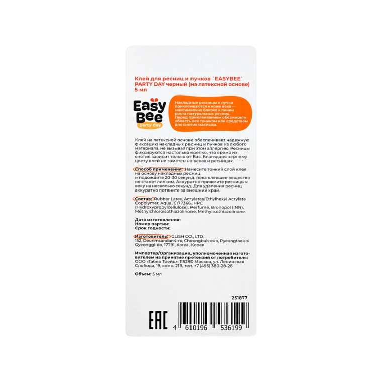 Клей для ресниц и пучков `EASYBEE` PARTY DAY черный (на латексной основе) 5 мл