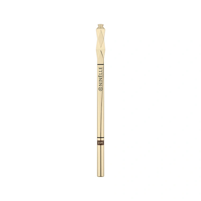 Формула на основе восков создает стойкое покрытие, которое противостоит воздействию пота, влажности и воды. Цвет не тускнеет и не размазывается в течение дня. Текстура карандаша обеспечивает ровное и регулируемое нанесение. Выдвижной грифель в форме треугольника легко скользит по коже, рисует тонкие волоски и оставляет естественный оттенок. Встроенная щёточка точно формирует брови и убирает излишки текстуры.