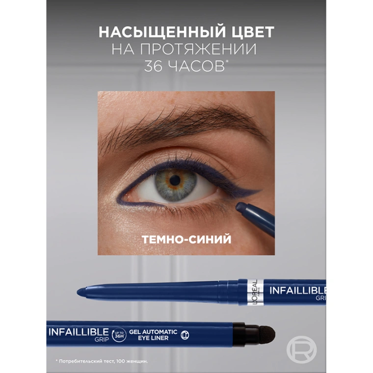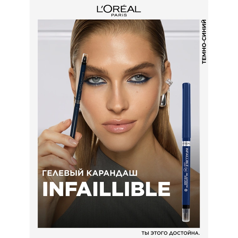 Наш первый стойкий автоматический гель-карандаш от L'Oreal Paris (Л'Ореаль Париж) Infaillible Grip, вдохновленный инновационными технологиями. Гелевая формула для плавного скольжения и легкого нанесения, обеспечивающая до 36 часов стойкости к воде и трению. Встроенный спонж для комфортной и точной растушевки нарисованных линий, способствует созданию вашего индивидуального образа.