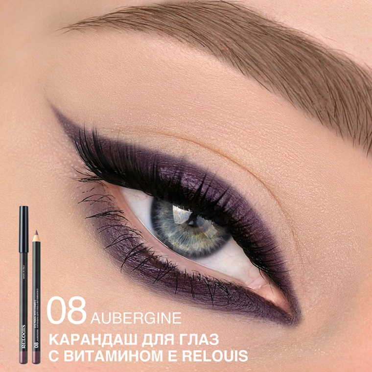 Карандаш для глаз `RELOUIS` с витамином Е тон 08 aubergine