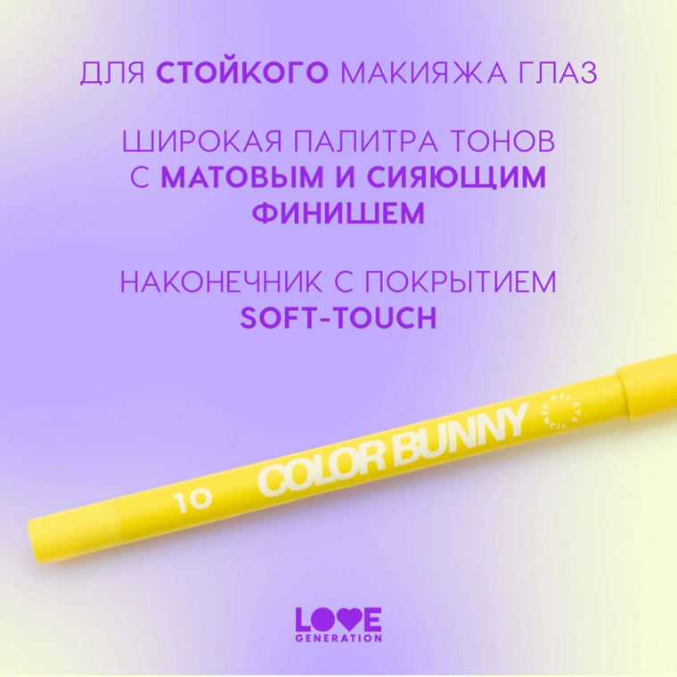 Карандаш для глаз `LOVE GENERATION` COLOR BUNNY гелевый тон 10 Ahh stop it желтый