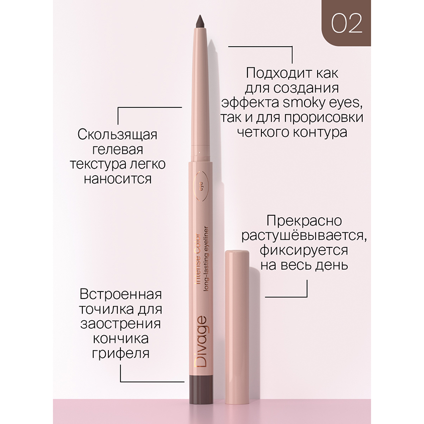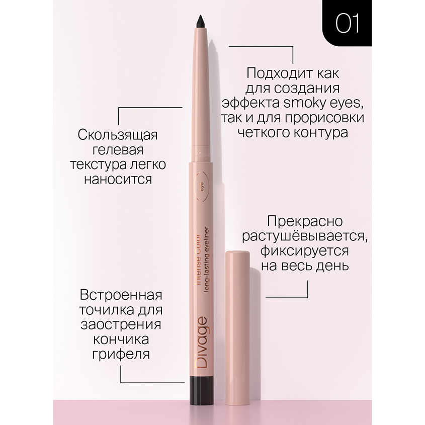 Автоматический стойкий карандаш для глаз Intense Color long-lasting eyeliner имеет скользящую гелевую текстуру, легко наносится и отлично растушевывается. Карандаш подходит как для создания эффекта smoky eyes, так и для прорисовки четкого контура. Текстура карандаша устойчивая и фиксируется на весь день. Карандаш Intense Color long-lasting eyeliner имеет встроенную точилку для заострения кончика грифеля, как только в этом появится необходимость.