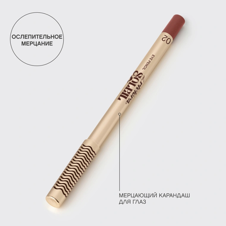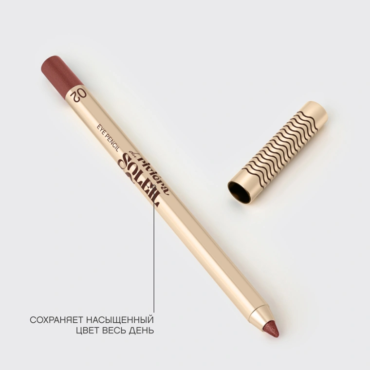 Гелевый карандаш для глаз RIVIÉRA DU SOLEIL от VIVIENNE SABÓ с эффектом потрясающего мерцания аккуратно наносится и сохраняет насыщенный цвет весь день, независимо от твоих планов. Ослепительное сияние подчеркивает взгляд и придает образу особую изюминку. Мягкая текстура легко наносится, а стойкость формулы гарантирует, что макияж останется безупречным даже в самые жаркие дни. Карандаш в 01 бронзовом оттенке подчеркивает естественную красоту, добавляя образу изысканности и тепла, как солнечные лучи, играющие на загорелой коже. Красно-коричневый дуохром 02 — трендовый и необычный цвет, вобравший в себя магию ривьерских закатов. Золотое покрытие корпуса придает ему роскошный вид, а коричневые волны на крышке создают атмосферу движения и тепла летнего побережья.