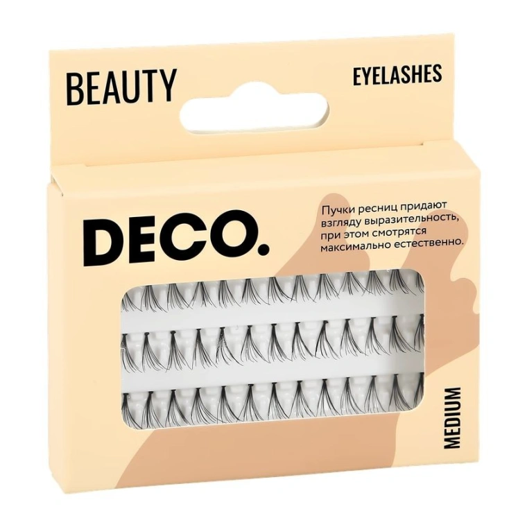 Накладные пучки ресниц DECO. предназначены для увеличения объема и густоты натуральных ресниц. Благодаря высококачественному материалу пучки очень легкие, неощутимы на глазах и могут быть использованы длительное время. Длина средних черных пучков: 12 мм.
