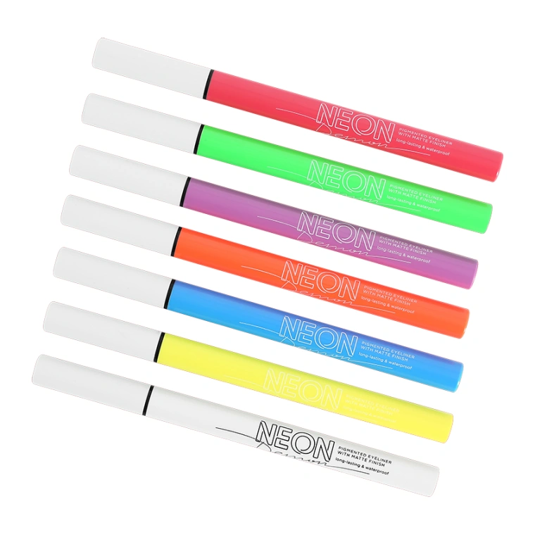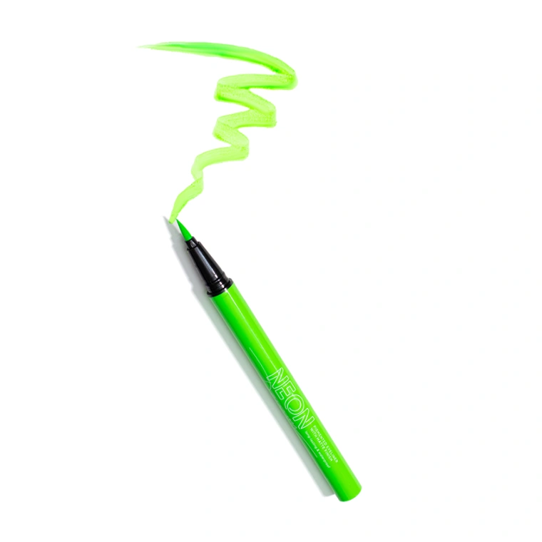 Яркие подводки для макияжа глаз помогут создать ультрамодный образ. Неоновая подводка для век быстро сохнет, не отпечатываясь на верхнем веке, и сохраняет первозданный цвет в течении всего дня. Создавай свои креативные образы, стойкие и четкие линии, сияющие в ультрафиолете. Благодаря тонкому фетровому наконечнику вы получите максимально ровный и аккуратный контур, контролируя интенсивность и толщину линий. Не течет, не размазывается, быстро сохнет, держит яркий и насыщенный цвет от нанесения до демакияжа. Разнообразие цветов позволит воплотить в жизнь любую задумку в макияже. При нанесении под углом 90 градусов обеспечивает тонкую, точную линию, для более толстой линии нанесите под более острым углом.
