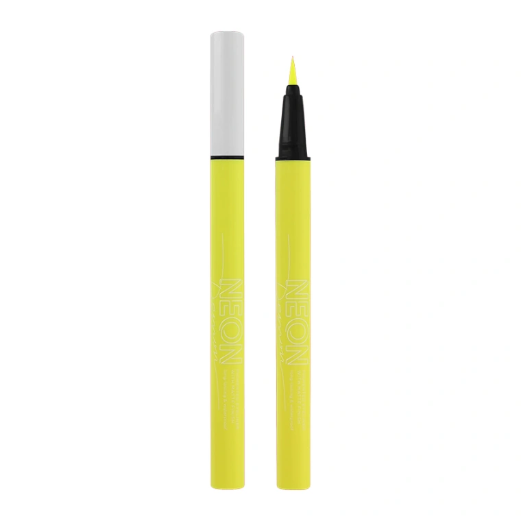 Яркие подводки для макияжа глаз помогут создать ультрамодный образ. Неоновая подводка для век быстро сохнет, не отпечатываясь на верхнем веке, и сохраняет первозданный цвет в течении всего дня. Создавай свои креативные образы, стойкие и четкие линии, сияющие в ультрафиолете. Благодаря тонкому фетровому наконечнику вы получите максимально ровный и аккуратный контур, контролируя интенсивность и толщину линий. Не течет, не размазывается, быстро сохнет, держит яркий и насыщенный цвет от нанесения до демакияжа. Разнообразие цветов позволит воплотить в жизнь любую задумку в макияже. При нанесении под углом 90 градусов обеспечивает тонкую, точную линию, для более толстой линии нанесите под более острым углом.