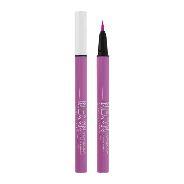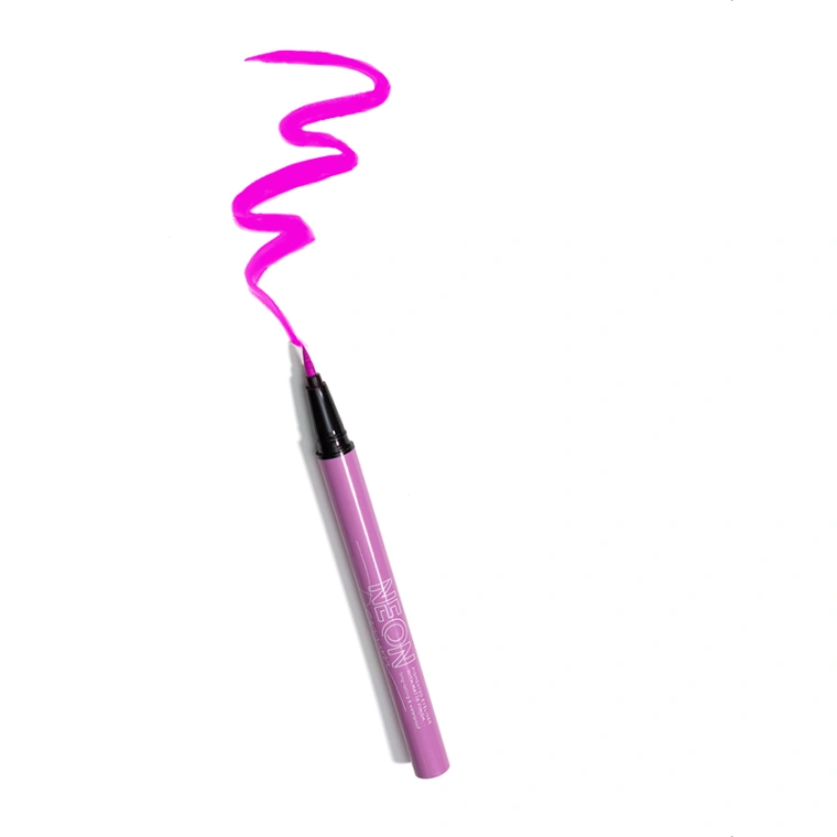 Яркие подводки для макияжа глаз помогут создать ультрамодный образ. Неоновая подводка для век быстро сохнет, не отпечатываясь на верхнем веке, и сохраняет первозданный цвет в течении всего дня. Создавай свои креативные образы, стойкие и четкие линии, сияющие в ультрафиолете. Благодаря тонкому фетровому наконечнику вы получите максимально ровный и аккуратный контур, контролируя интенсивность и толщину линий. Не течет, не размазывается, быстро сохнет, держит яркий и насыщенный цвет от нанесения до демакияжа. Разнообразие цветов позволит воплотить в жизнь любую задумку в макияже. При нанесении под углом 90 градусов обеспечивает тонкую, точную линию, для более толстой линии нанесите под более острым углом.