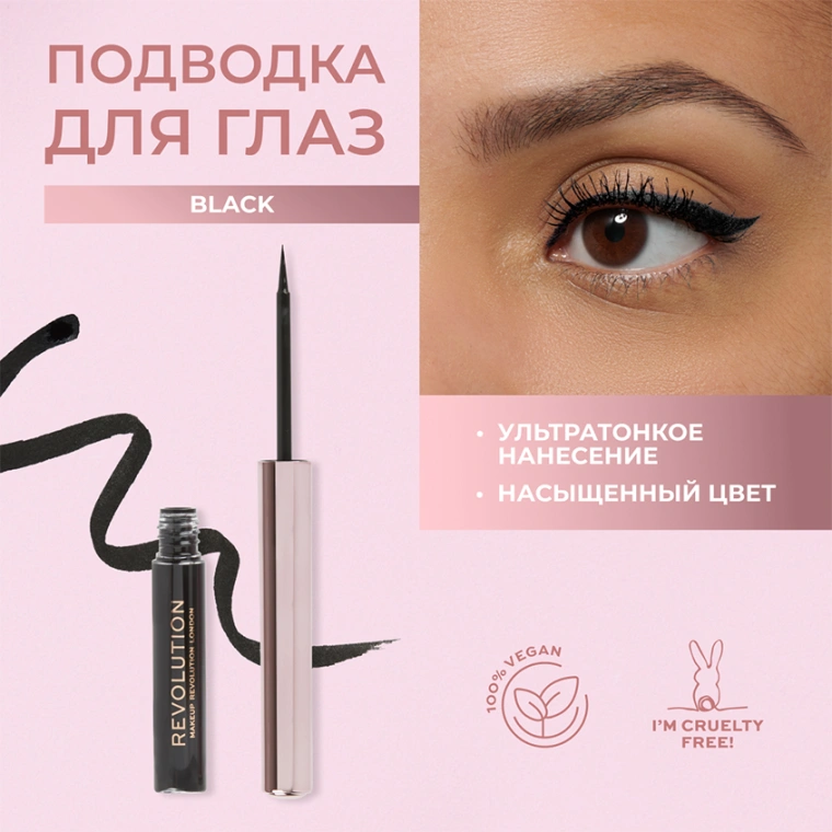Подводка для глаз `REVOLUTION` SUPER FLICK LIQUID EYELINER жидкая тон Black