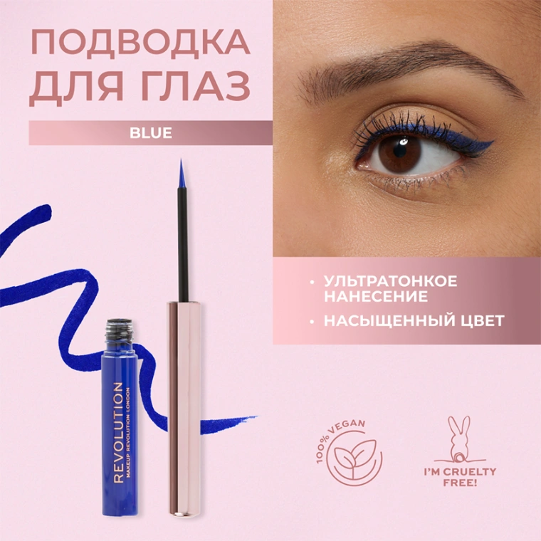 Подводка для глаз `REVOLUTION` SUPER FLICK LIQUID EYELINER жидкая тон Blue