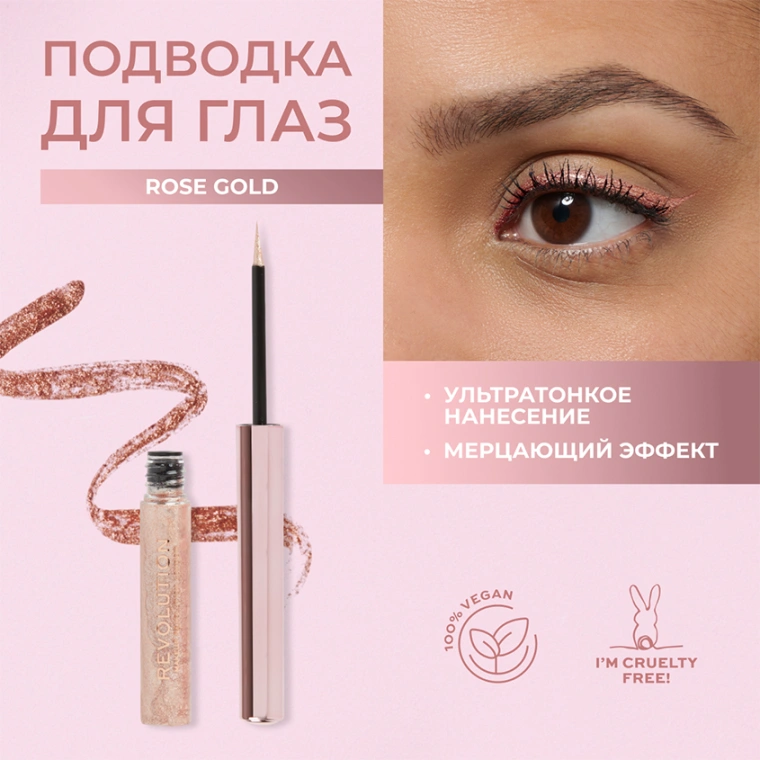 Подводка для глаз `REVOLUTION` SUPER FLICK LIQUID EYELINER жидкая тон Rose Gold