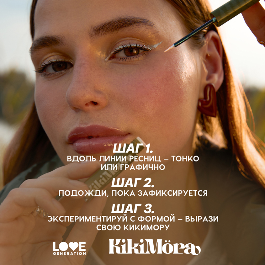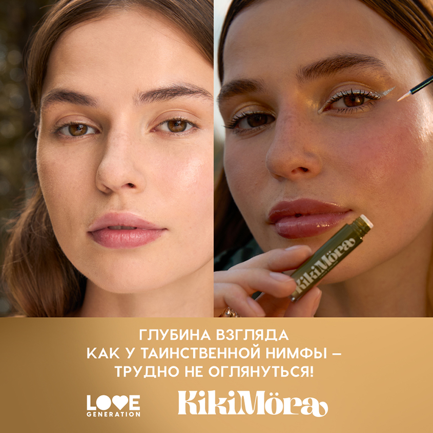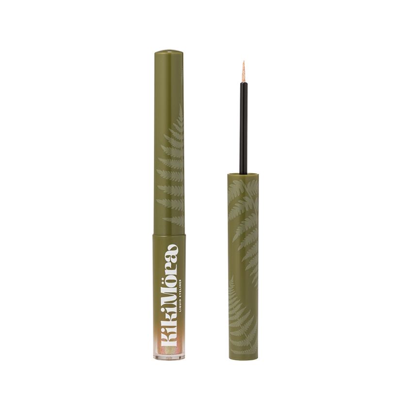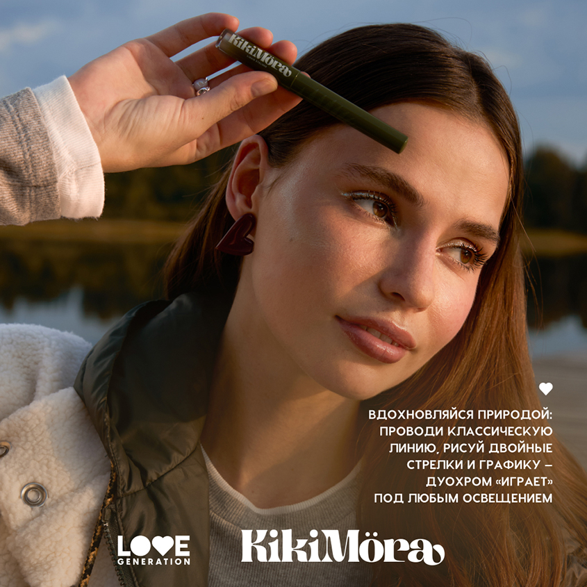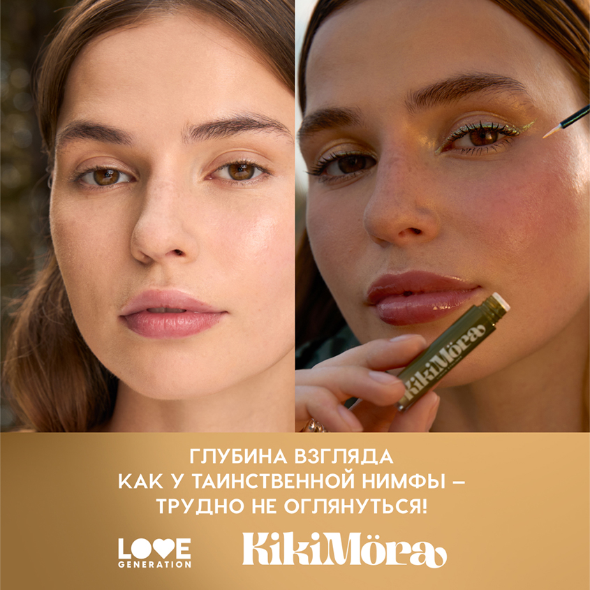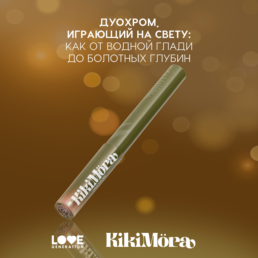 Сияющая дуохромная формула подводки для глаз KIKIMORA меняется под разным освещением, как поверхность лесного озера или таинственная болотная гладь. Легкая текстура наносится без усилий и остается яркой в течение всего дня, придавая взгляду глубину, выразительность и немного магии. Удобным аппликатором в форме тонкой ворсовой кисти легко нарисовать как классические стрелки, так и графические элементы, даже если ты новичок в макияже.