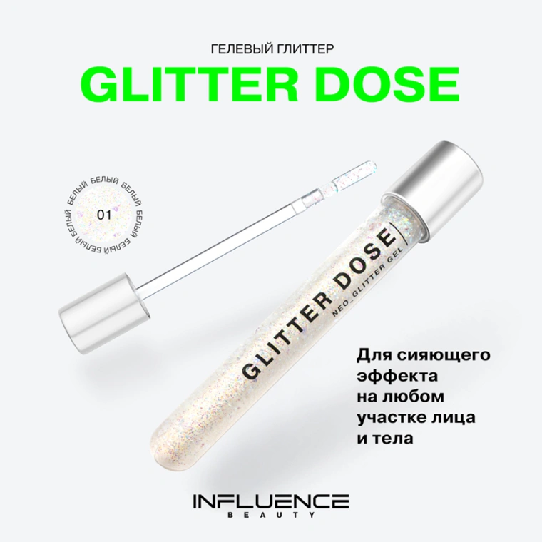 Глиттер `INFLUENCE BEAUTY` GLITTER DOSE на гелевой основе тон 01