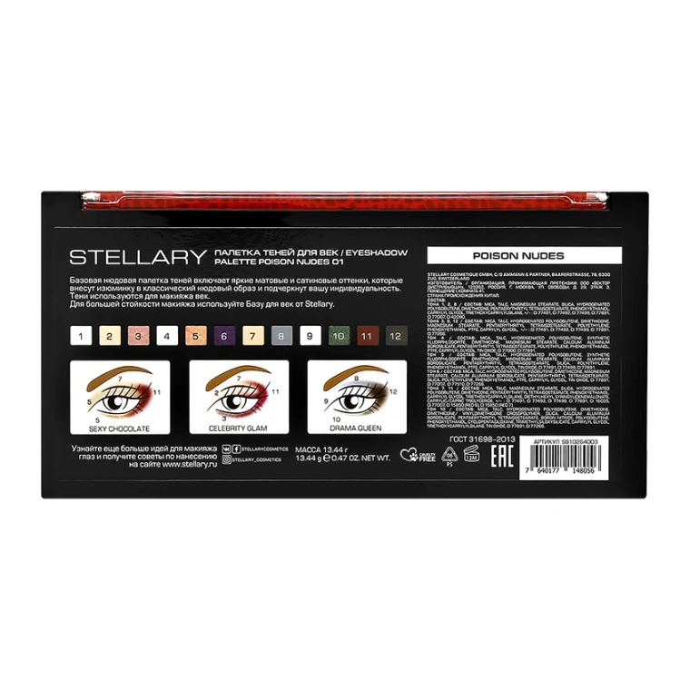 Следуйте пошаговым инструкциям на оборотной стороне палетки. Воспользуйтесь аппликатором и кистями