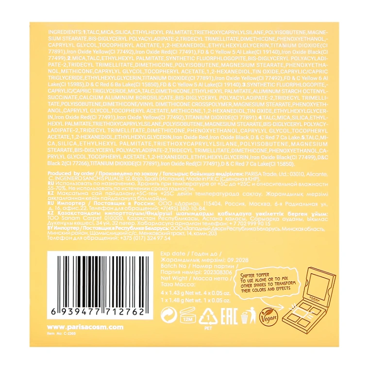 Набор теней для век `PARISA` MIX & MATCH тон 03 Orange