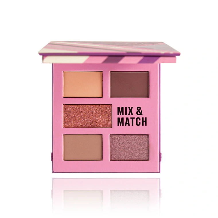Удобные мини-палетки теней Mix&Match включают в себя 5 тонов, идеально подобранных по цветовой гамме. Нейтральные и с матовые, мерцающие и с металлическим финишем позволят даже новичку создавать самые разные макияжи быстро и непринужденно - от дневного нюдового до выразительного вечернего. У вас получатся модные смоки айз, растушеванная стрелка, естественный мэйк на каждый день. Шиммерные варианты можно использовать в качестве спаркла на подвижное веко по центру, в уголках глаз, над губой вместо хайлайтера. С помощью нюдовых - выстроить форму, подчеркнуть линии (выполнить контуринг бежевыми и темными, блестящими и матовыми цветами). Мягкая шелковистая текстура и насыщенные цвета при нанесении не плешивят и легко растушевываются, не осыпаются. Тени ложатся без проблем и смотрятся дорого, ярко. Они подойдут для использования профессиональными визажистами в работе и для домашнего применения. Декоративный косметический продукт упакован в стильный небольшой футляр, в котором есть выдвижное мини-зеркальце.