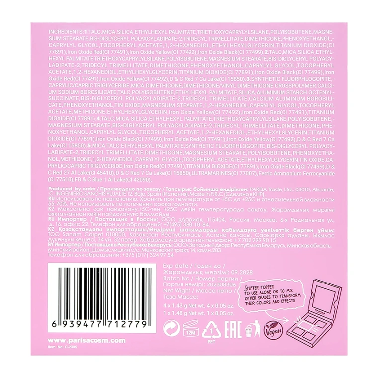 Бренд Parisa Cosmetics создан в знойной Испании и пронизан характером этой страны. Яркие краски, буйство текстур, широкий выбор оттенков – все это неизменно присутствует в каждом продукте бренда. История бренда начинается в небольшом испанском городке Байо. Девушки этого городка славились своей красотой на всю округу. Именно эта знойная красота, темперамент и врожденное южное обаяние местных жительниц вдохновили основателя бренда на создание ярких и модных продуктов для макияжа, способных подчеркнуть природную красоту любой женщины. Мы ежедневно внимательно отслеживаем новейшие тренды в макияже и моде, работаем над изготовлением новых интересных продуктов, следуя всем желаниям наших покупательниц. Продукция производится из качественного сырья известных европейских компаний Испании, Франции, Германии, что позволяет 100% гарантировать безопасность и заявленные свойства. Производство осуществляется на сертифицированных по европейским стандартам заводах Китая, Германии, Чехии и России. Мы постоянно развиваемся и меняемся для Вас! Все самые новые модные продукты косметического рынка по приятной цене и с европейским качеством – все это Parisa Cosmetics!