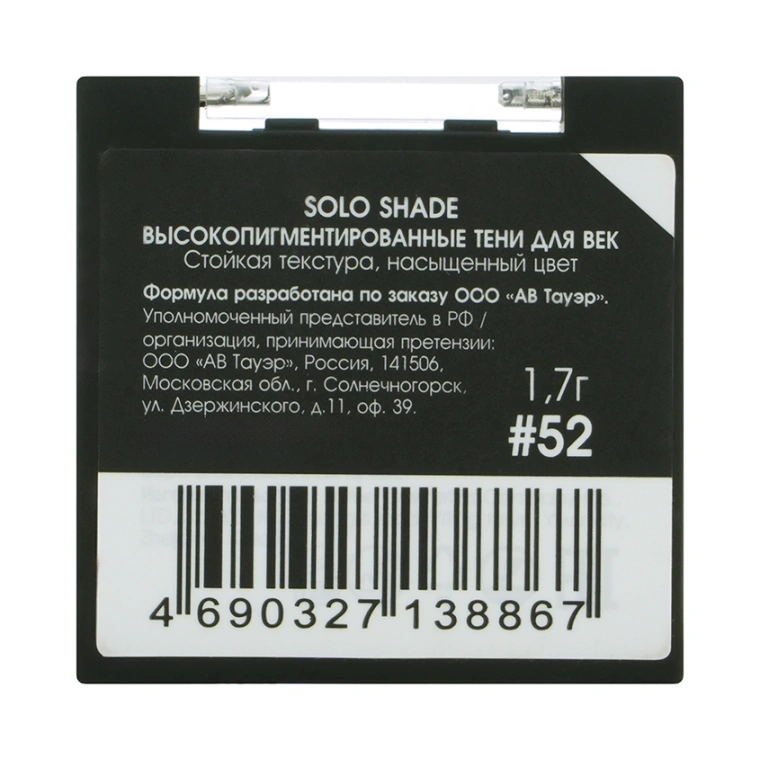 Моно-тени для век `ART-VISAGE` SOLO SHADE высокопигментированные тон 57 Угольно-черный