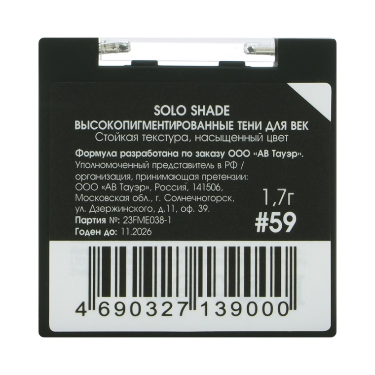 Моно-тени для век `ART-VISAGE` SOLO SHADE высокопигментированные тон 59 Жемчужный
