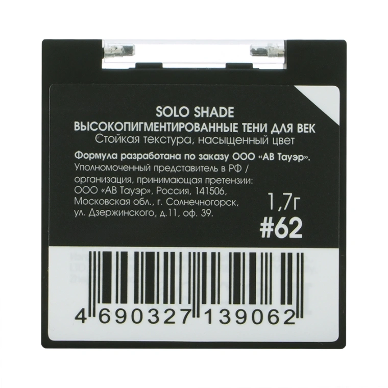Моно-тени для век `ART-VISAGE` SOLO SHADE высокопигментированные тон 57 Угольно-черный