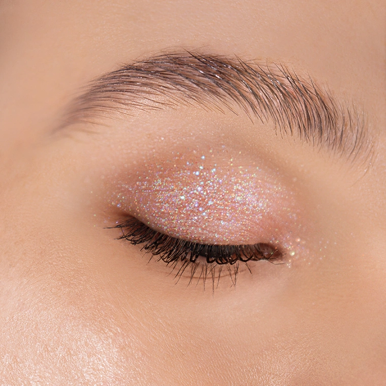 Можно использовать самостоятельно или наносить поверх теней для век в качестве сверкающего топ-покрытия. Легко снимаются любым средством для демакияжа.