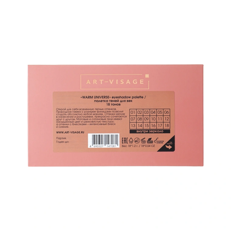 ART-VISAGE – крупнейшее производство декоративной косметики полного цикла в России. Использование премиального сырья мировых производителей и многоступенчатая система контроля позволяют поддерживать стабильно высокий уровень качества косметики, соответствующей стандартам ГОСТ.