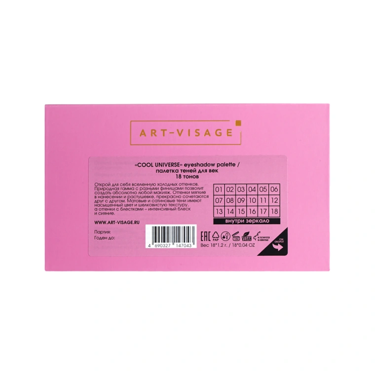 Палетка теней для век `ART-VISAGE` COOL UNIVERSE холодные оттенки 18 тонов