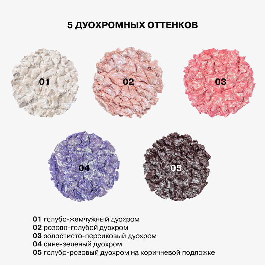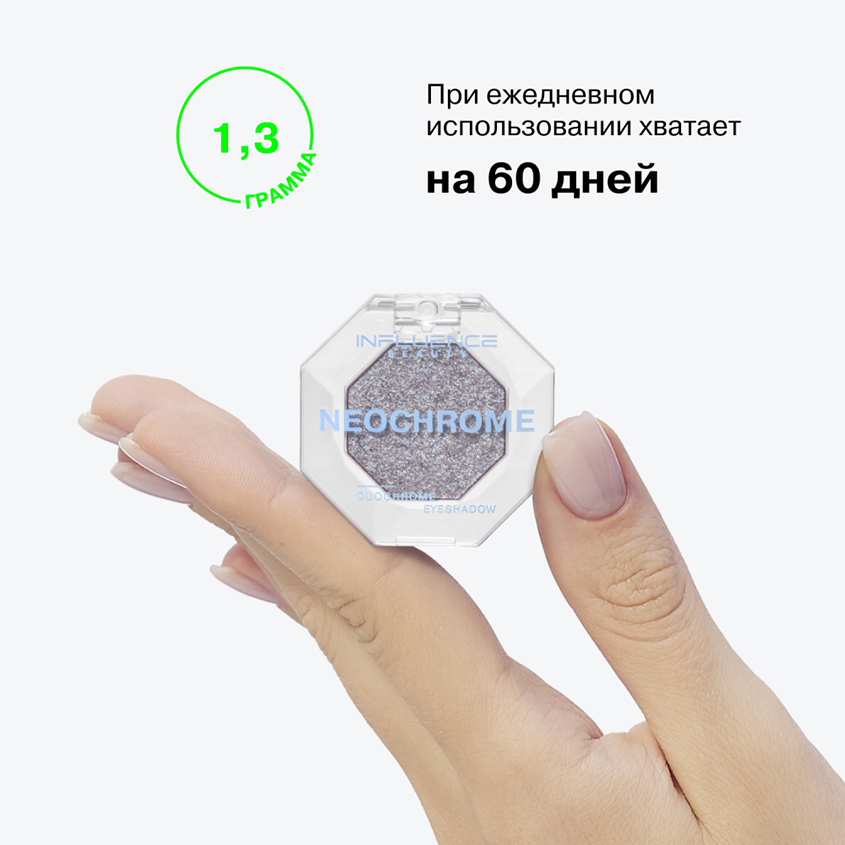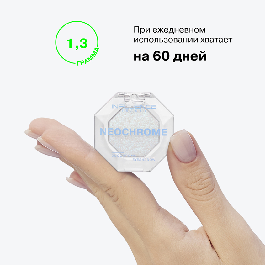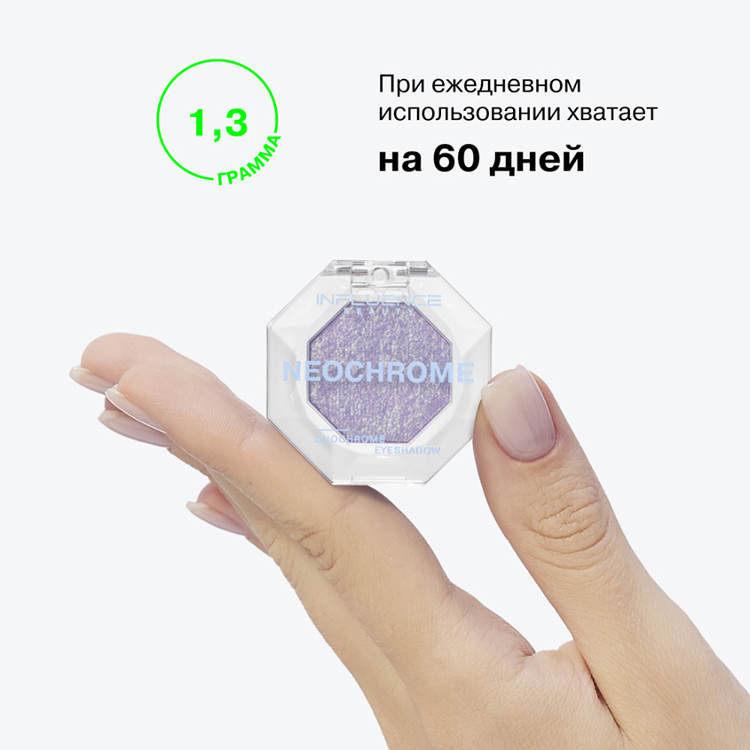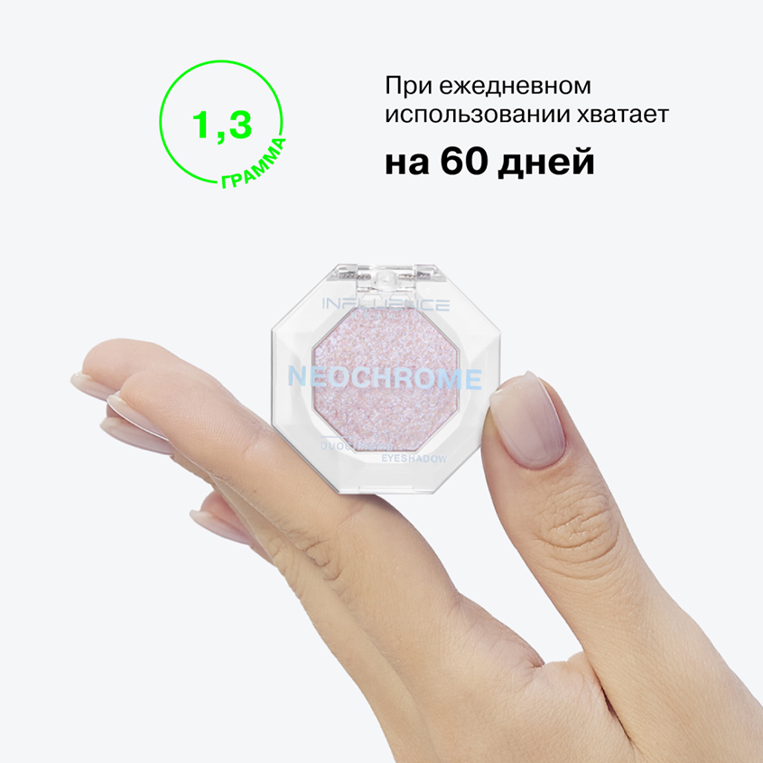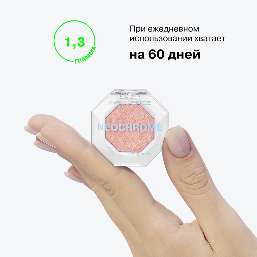 Дуохромные монотени NEOCHROME от INFLUENCE BEAUTY — смена парадигмы в мире пигментов. Это слияние двух миров: нового (Neo) и цвета (Chrome). Neo символизирует передовые технологии, инновации и будущее, где восприятие цвета выходит за пределы привычного. Chrome же отсылает к хроматическим измерениям, в которых свет и цвет взаимодействуют, меняясь и преображаясь в зависимости от внешних факторов. Тени с ультратонкими дуохромными микропигментами созданы с помощью технологии MICROPIGMENT и имеют уникальную способность менять свой цвет в зависимости от угла падения света. При нанесении пигменты реагируют на световые волны, создавая эффект двустороннего цвета: один момент — тени проявляют холодные металлические оттенки, а в следующий миг они превращаются в теплые глубокие тона. Пластичная гладкая текстура обеспечивает легкое нанесение и растушевку. Тени в пяти оттенках идеально комбинируются между собой, позволяя создавать эффект мультихромности. NEOCHROME можно нанести пальцем для мягких плавных переходов, а для более интенсивного эффекта и насыщенного цвета используйте влажную основу.